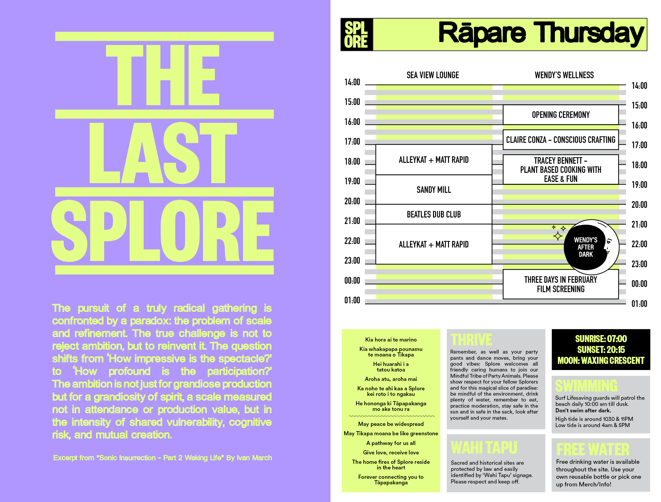 PROGRAMME MUSICPERFORMANCE+ CABARETWENDY’S WELNESS LUCKY STARVISUAL ARTSRumpus RoomLISTENING LOUNGEWHARE TAPERE DOWNLOADABLE:PRINT FORMAT PDFDEVICE FORMAT PDF ⬇VIEW FULL PROGRAMME ⬇ D A Y S P L I T S